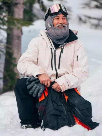 Bryan Iguchi was one of the first Volcom team riders and it’s hard to imagine the snowboard scene without him. He spends most of his time in the backcountry and the Iguchi Slack Vest supports him.