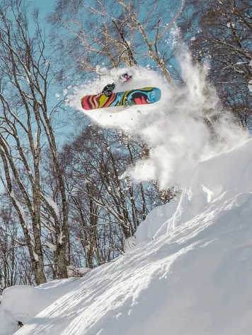 The Directional Twin shape gives you more uplift in powder and excellent riding characteristics forward and switch. The optional offset of the bindings towards the tail (setback) makes the nose slightly longer for even more float in deep snow.